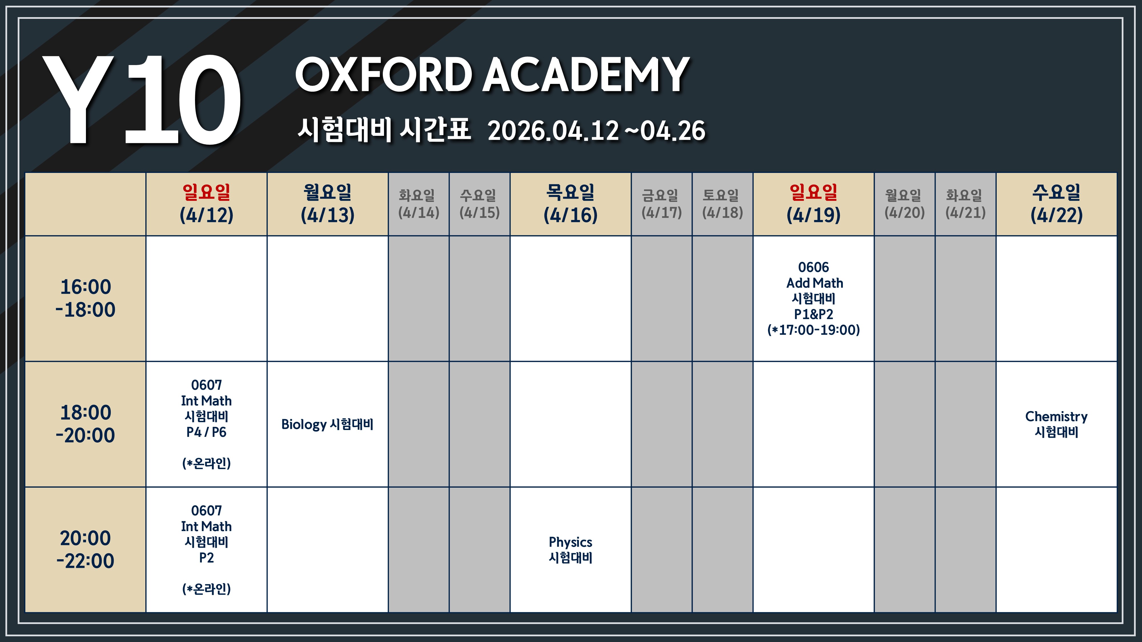 2026년 Y10 시험 대비반 (제주) 스케줄 입니다 :)