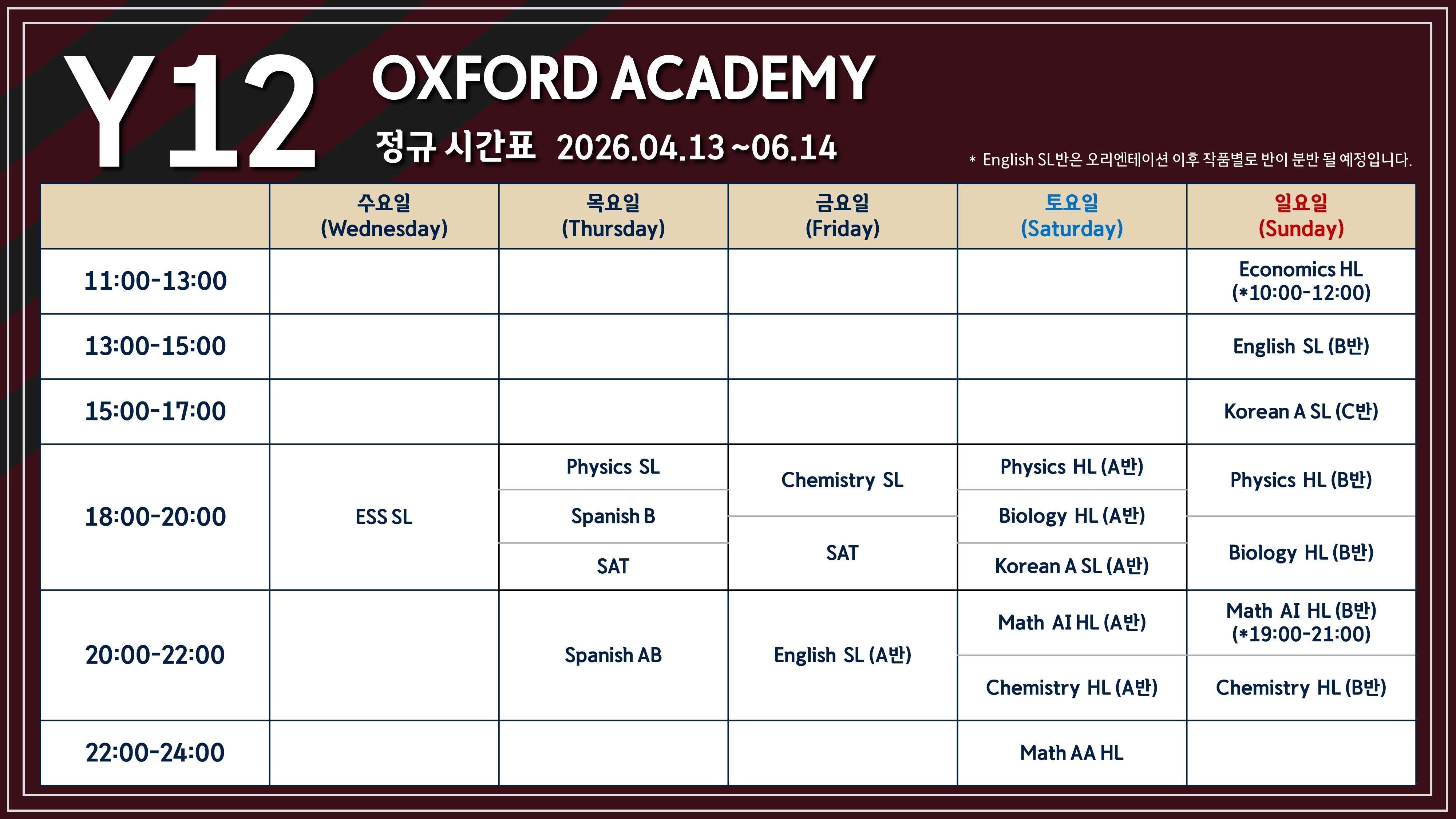 2026년 Y12 Spring 정규반 (제주) 스케줄 입니다 :)